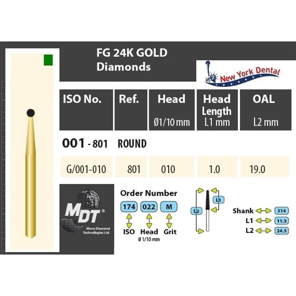 MDT Gold 24K G/001-010C Turbina gyémánt, aranybevonatú szár, gömb