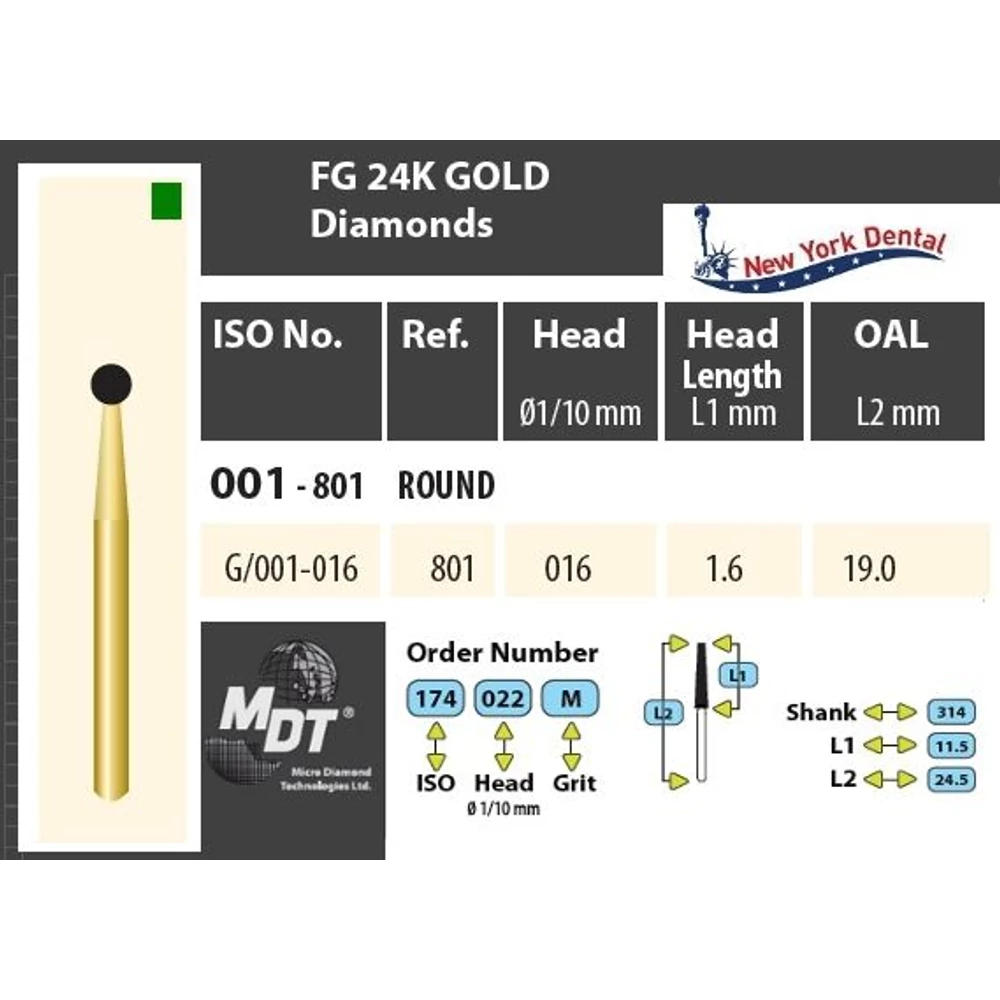 MDT Gold 24K G/001-016C Turbina gyémánt, aranybevonatú szár, gömb