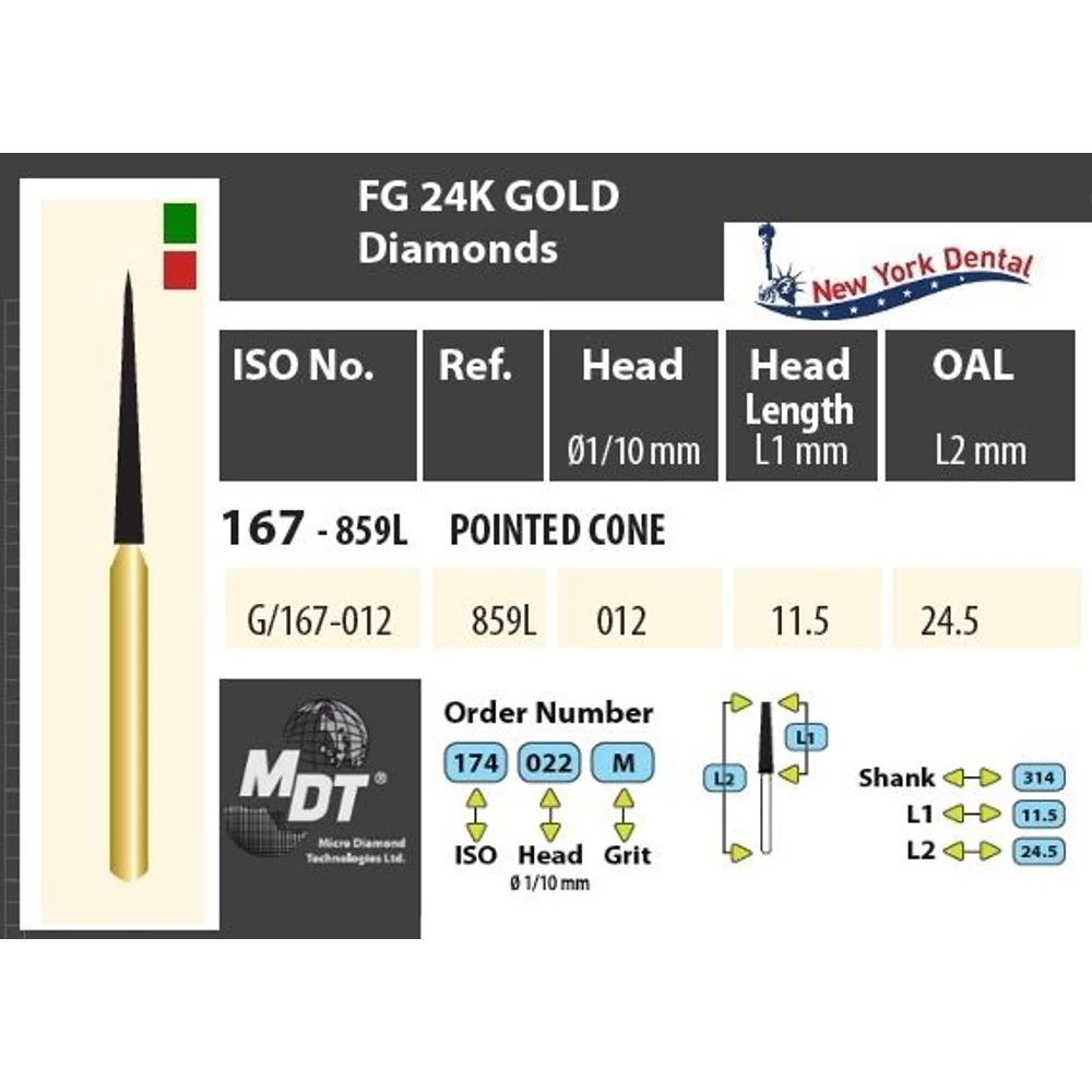 MDT Gold 24K G/167-012F Turbina gyémánt, aranybevonatú szár, hegyes kúp