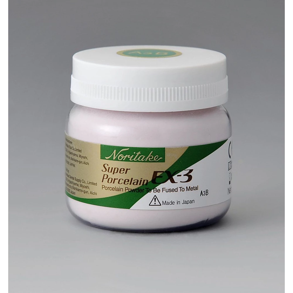 Noritake EX-3 Body A3.5 (50g) - dentin A NORITAKE SUPER PORCELAIN EX-3 feldolgozása egyszerű. Kiemelkedő tulajdonságait nagyon finom szemcseméretének köszönheti. A NORITAKE SUPER PORCELAIN EX-3 kiemelkedik a leplezőkerámiák közül, mert hőtágulási együtthatója az égetések során (CTE) is stabil marad . Nagy fesztávolságú hídak égetése során is minden tag pontosan megformázható akár több égetéssel is, a repedés minimális kockázatával. Alkalmazható nemes- és nem nemesfém ötvözetekhez is. Fluoreszcenciája ideális, az ezüst-tartalmú ötvözetek sem befolyásolják. A NORITAKE SUPER PORCELAIN EX-3 ideális választás kerámialeplezéshez.