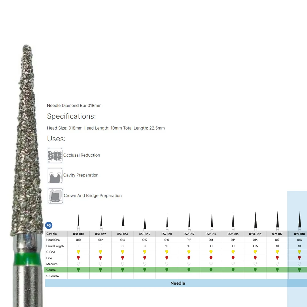 Forma: NeedleOkklúzió csökkentéséhez, kavitás, korona és híd preparálásához ajánljuk