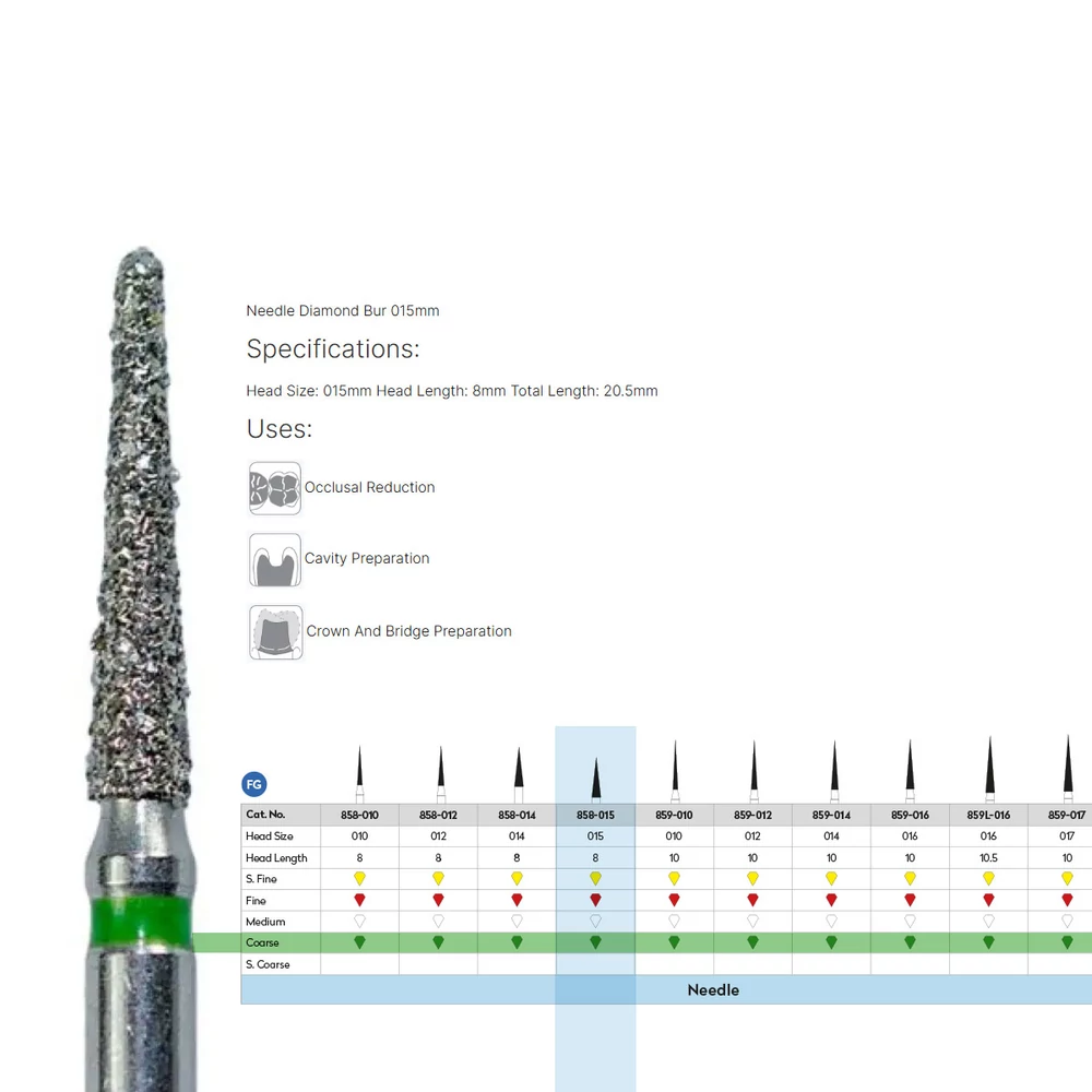 Forma: NeedleOkklúzió csökkentéséhez, kavitás, korona és híd preparálásához ajánljuk