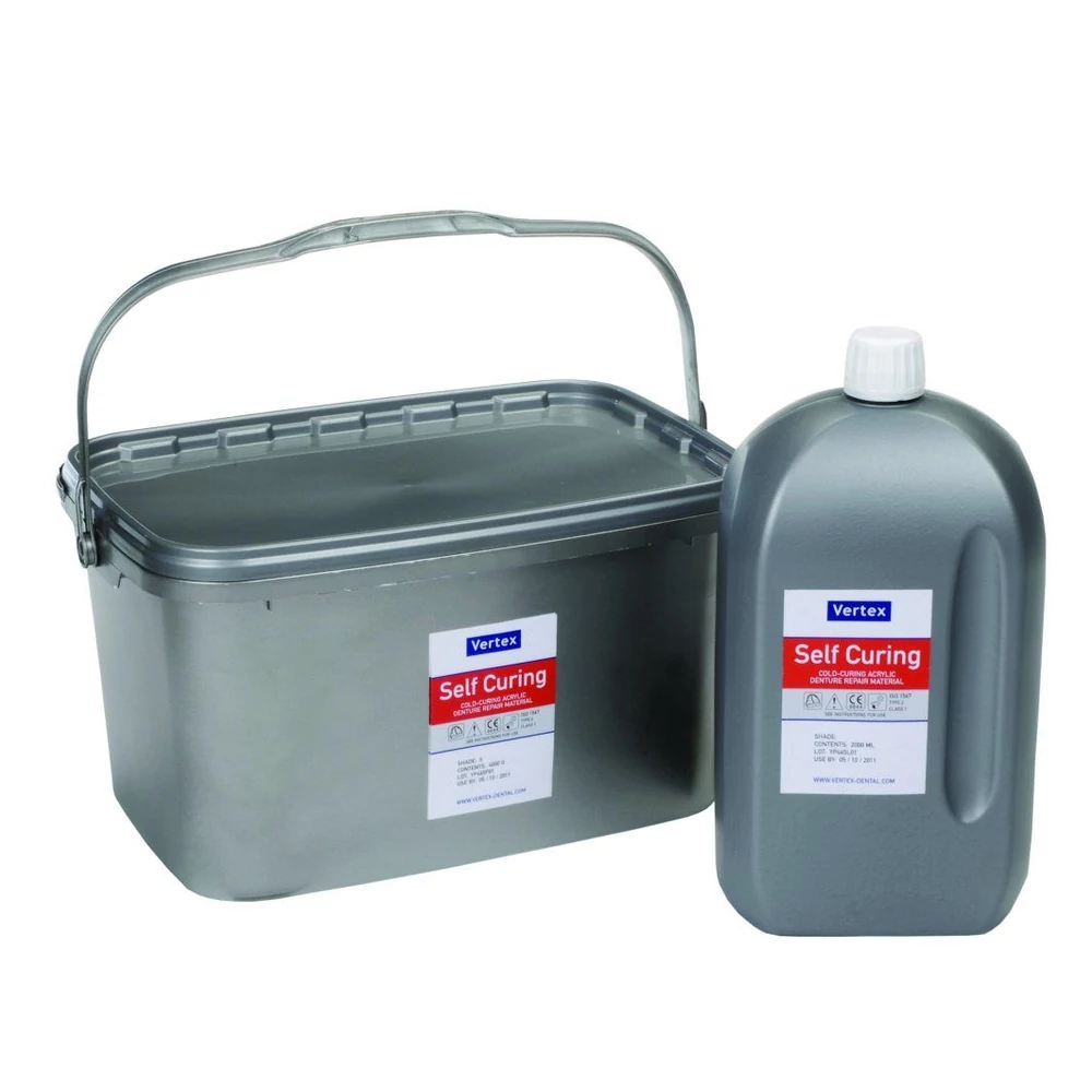 A Vertex Self-Curing önkötő akrilát por-folyadék rendszer alkalmas normál polimerizátum akrilát teljes és részleges fogsorok javítására, kiegészítésére, illetve alábélelésére (pl.: Vertex Rapid Simplified és Regular). Nyomás alatt 10 perc polimerizáció szükséges.
