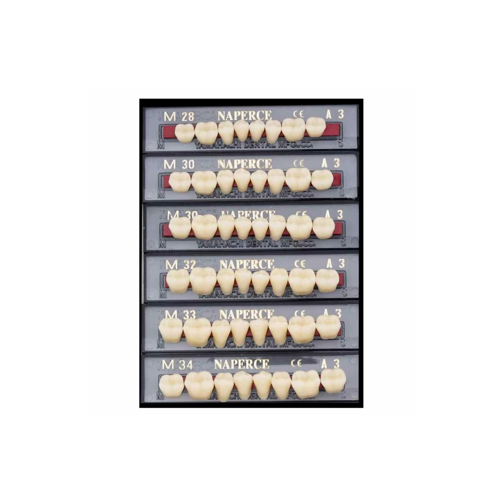 32L lower posterior. Yamahachi 2-layer VITA A3,5 colored acrylic teeth for removable dentures. Excellent fixation in the base plate, excellent color stability, advanced Japanese technology. The cusp angle of NAPERCE POSTERIOR is 30°. Available in 16 "V-Classical" +2 bleached shades.