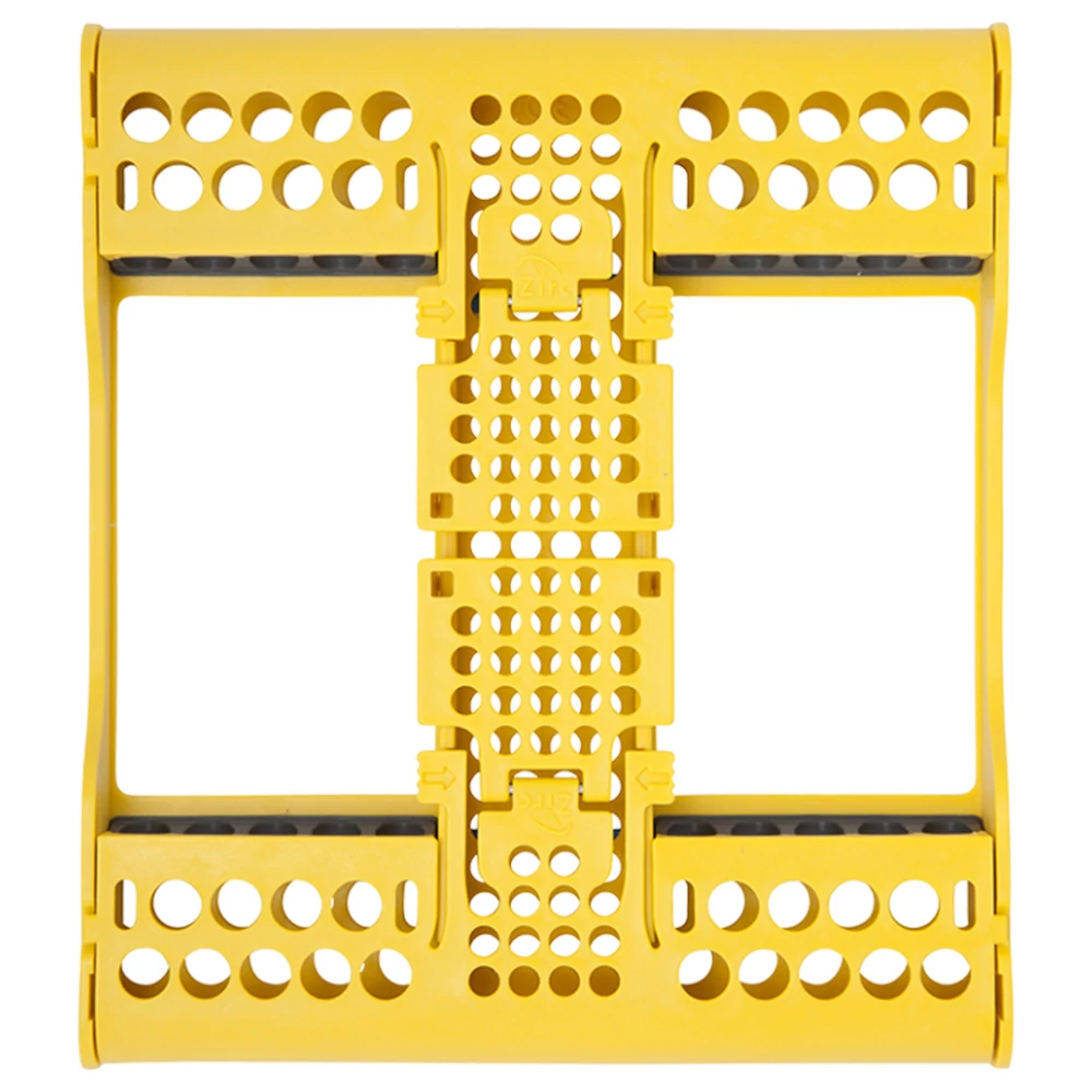 ZIRC Jet műszertartó kazetta. 10 műszer befogadóképességű sterilizálható kazetta. Különleges, felül nyitott, kerek lyukú és lekerekített sarkú kialakítása jobb vízáramlást biztosít a normál kazettáknál. A két oldalon nyitható rögzítő panellel és a középső rekesszel gyorsan, könnyedén és biztonságosan rögzíthetőek a műszerek. Autoklávban hőkezelhető akár 136 ° C-ig. Microban® technológiájú antibakteriális felület.